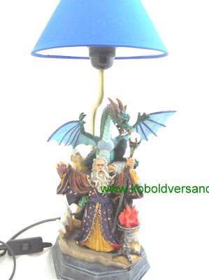 Tischlampe Drache und Magier mit Feuer