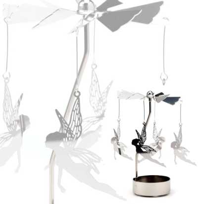 Auspacken, Elfen einstecken und Teelicht ( nicht dabei) anzünden und schon rotieren die Elfen.