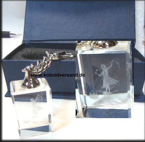 Die Elfe ist gelasert und befindet sich in dem Glaslock. Sie kommt in einer Geschenkverpackung.