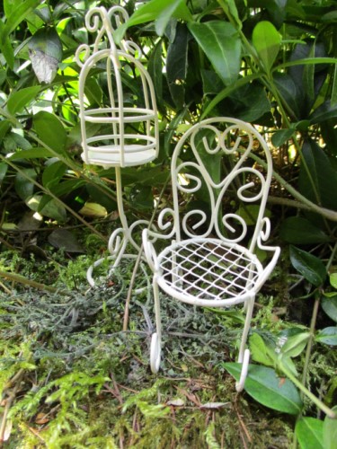 Mini Stuhl und Vogelkäfig Metall Elfengarten