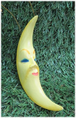 Zauberhafter Mond mit Gesicht aus sehr leichtem Holz, handbemalt. Ein wundervolles Dekostück für Eure Märchenwelt