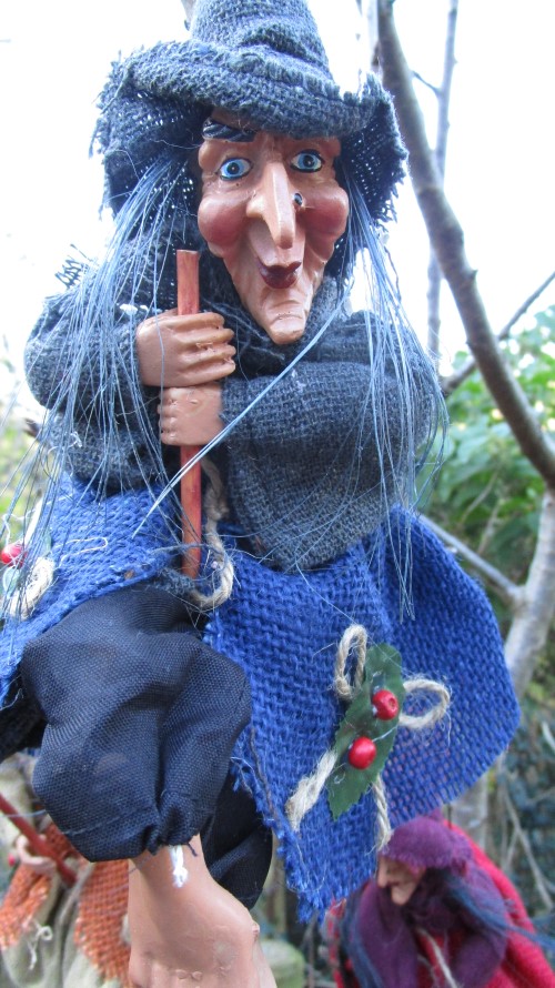 Die Hexe hat biegsame Arme und Beine, so kann man sie auch setzen.