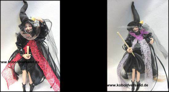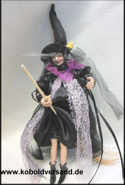 Aufwändigst gekleidete Hexe zum aufhängen mit kleiner Schnecke am Hut. 25 cm hoch Welche Ihr erhaltet entscheidet das Schicksal