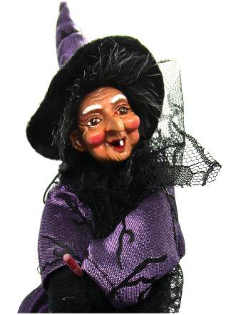 Schicke Hexenfigur auf Besen sehr edel angezogen und gut verarbeitet . Freundliches Gesicht und Schleifenschuhe
