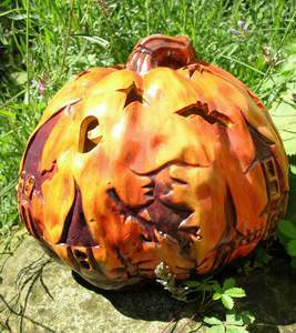 Mal was anderes !!! Dieses tolle ausgefallene Windlicht ist mit einer Hexe bemalt die übre Hexenhäuser fliegt. Ein sehr dekoratives Stück, etwa 22x18 cm