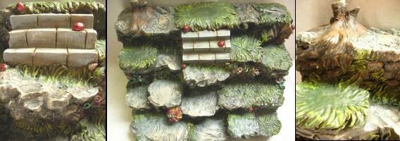Superschön gemacht, mit 15 Plattformen. Die Kleinste ist 4x 4,5 cm, die Größte ist 7x 12 cm. Aus Polyresin. Maße:36 x 25,5 x 22 cm
