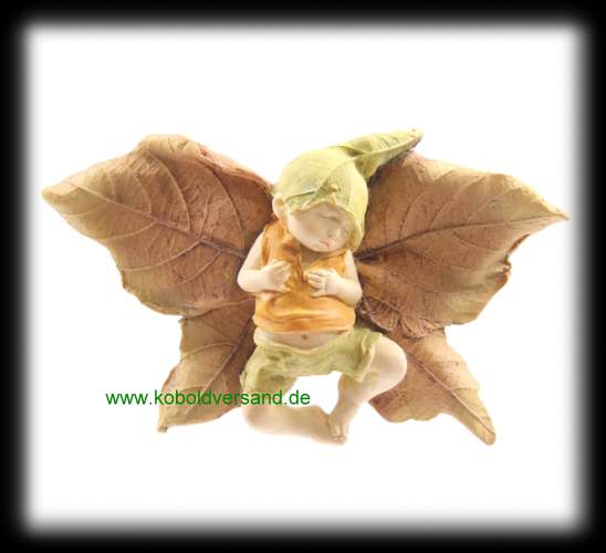 kleiner Kobold schläft friedlich in seinem Blattbett