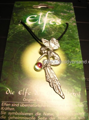 Diese Anhänger sind aus Zinn mit rundem, schillerndem Facettenstein. Sie kommen komplett mit einer schwarzen Kordel und einer Karte, auf dieser wird die Bedeutung der Elfe beschrieben.