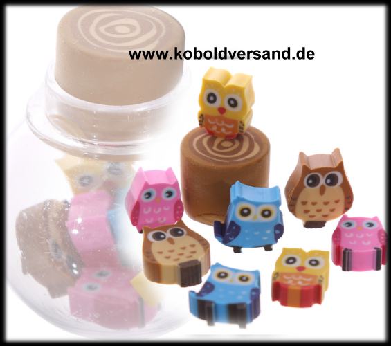 Glas Kunststoff 4.5x3.5x3.5cm Stöpsel Radierer 1.5x1.5x1.5cm Eulen Radierer 1x1x0.2cm